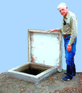 When I was a kid on the old homestead our cistern was about 25 feet straight out the front door of our house. It was a big hole about 8 feet in diameter and maybe ten feet deep in the ground. A cement floor had been put in it but the walls were dirt. Dad knew a lot about plastering because of his carpentry work. He quickly plastered the dirt walls with several coats of plaster. This made it water tight. The cistern’s vertical, round wall was capped with a cement lid (a wooden top would also work in a pinch). In the top of the lid was a 2 1/2 foot square cover. At first we lowered the bucket on a rope to get the water, but later Dad put a well pump on top of it so we didn’t have to open it and let dirt fall in. From the cistern we got all the water we needed for cooking, washing, and whatever. When the cistern got low, Dad diverted water from the ditch to fill the cistern. The water was fairly clear as it had just run out of a pond. After the cistern was full, Dad treated the water, probably with chlorine. We only put water in the cistern about twice a year.