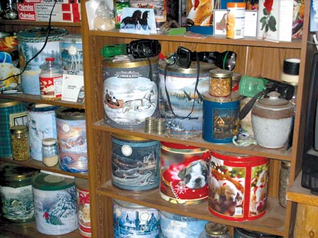 In my kitchen I keep colorful popcorn tins full of the dry foods I use most often: spaghetti noodles, macaroni, large and small egg noodles, sugar, flour, whole wheat flour, rolled oats, brown sugar (which is in a tight glass gallon jar inside the tin), cornmeal, masa harina de maize (corn flour), chocolate chips, and so on. These tins are great as they not only protect these mice-attractants but also look great too. And they hold a lot of food.