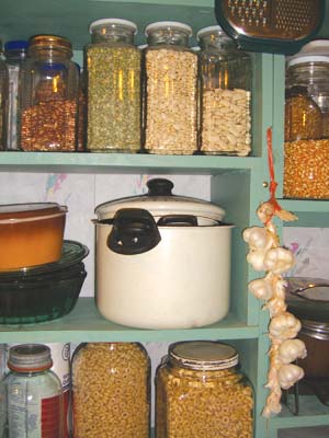 Everyone should have a pantry containing a good supply of the foods they use most frequently. A well-stocked pantry is not only the foundation for a good kitchen, but it is essential to a family’s well-being, should some unforeseen calamity pop up. I have two years’ worth of food stashed away in my basement pantry. All that food sure came in handy the first year we were here on our new homestead. Not only did my small garden freeze out on July 27th, but suddenly Mom and Dad came to live with us in “camping” conditions, doubling our food consumption when we were all broke.